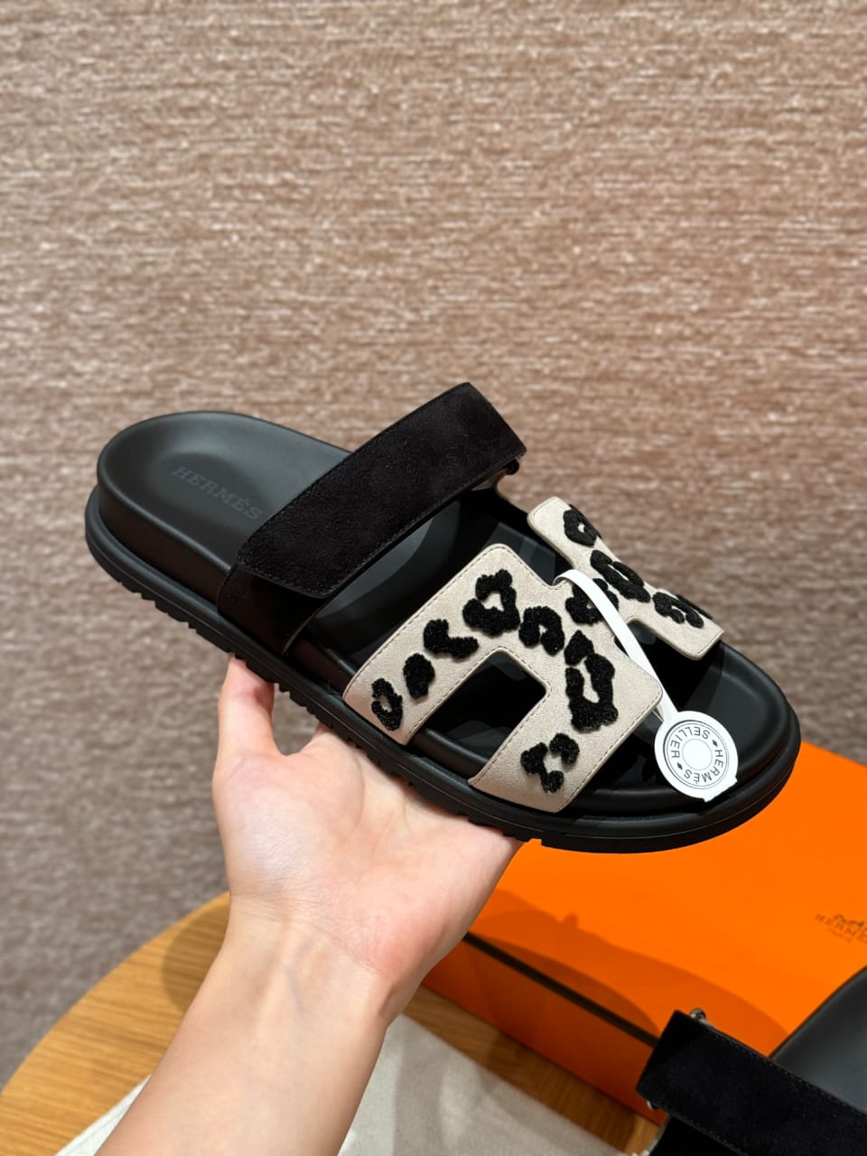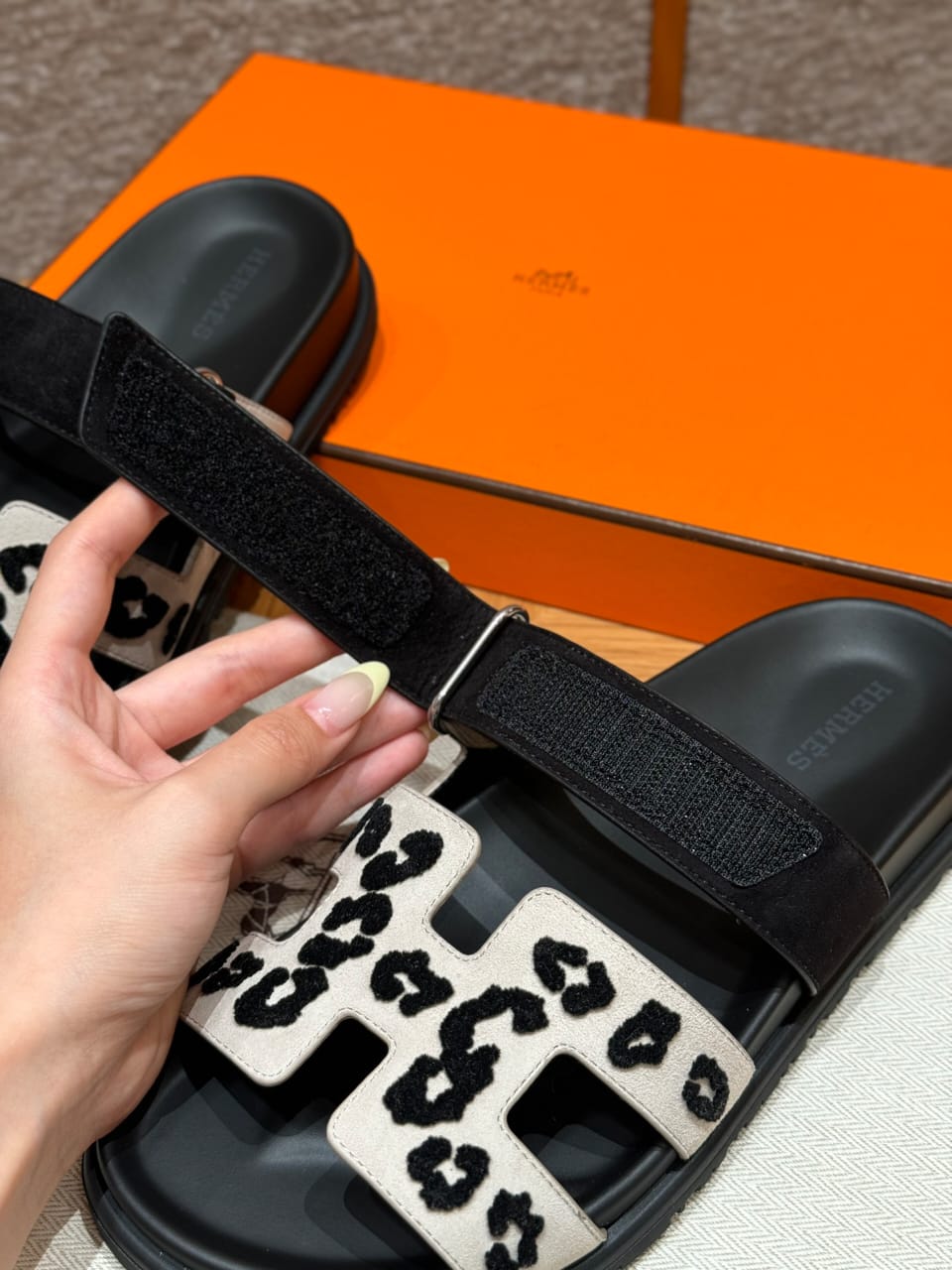 Sandales Chypre Hermès Blanc Léopard